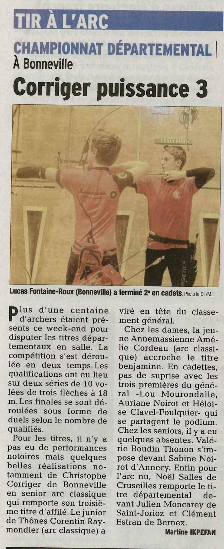 Le Dauphiné Libéré, 30 janvier 2017Championnat départemental à Bonneville ...